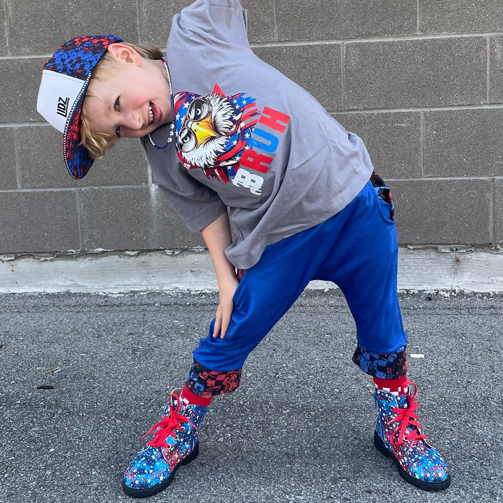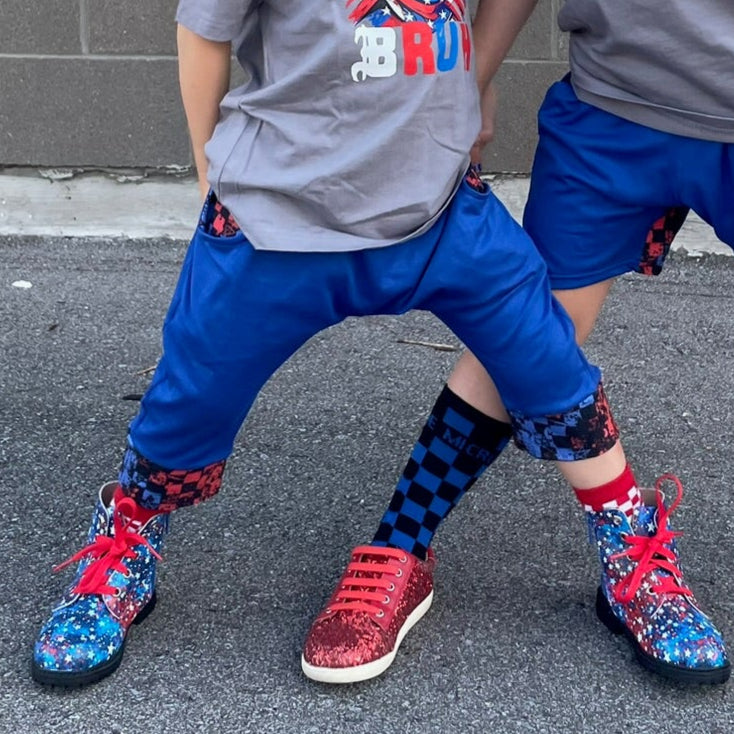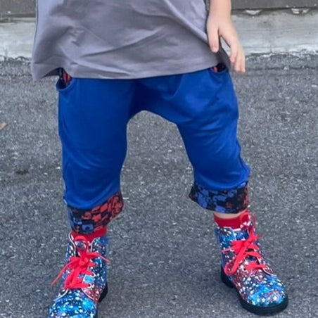 Unisex harem shorts for your littlle dude or babe!  Gender  neutral. Hits below knee.  Exclusive & custom print, hand-made from start to finish in the good ole USA.  Printed double brushed poly, hand stitched and pacakged in our Oviedo, FL. warehouse!