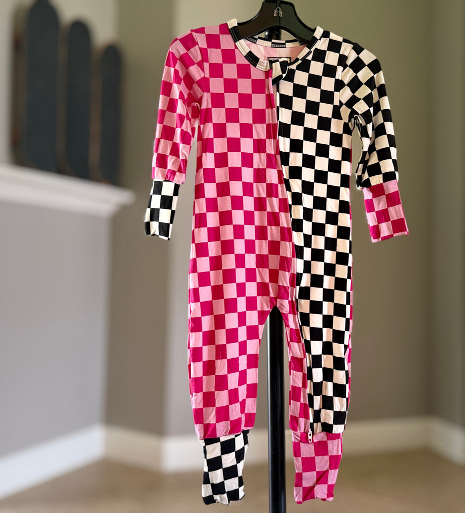 ARROW Zippy are long jammies with double zippers (zips from top and bottom for easy changes!) . Sizes up to 24M have the extra long/folded cuff to fold over their hands and feet. This style mixes two fun prints for the cutest look for your littles!!