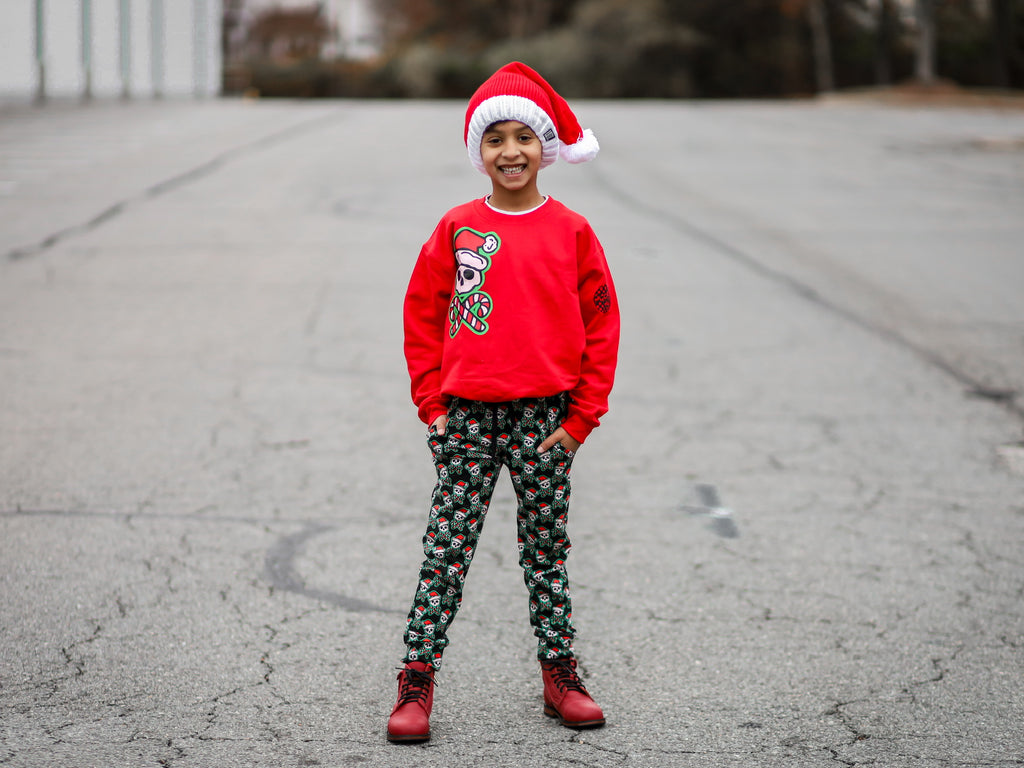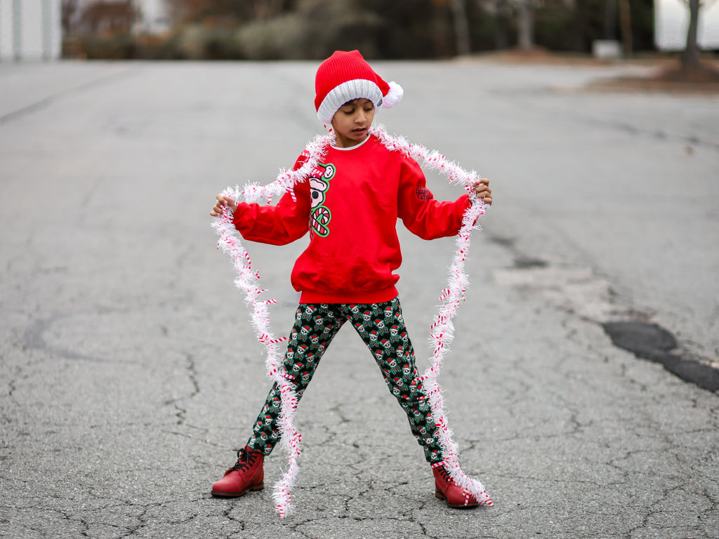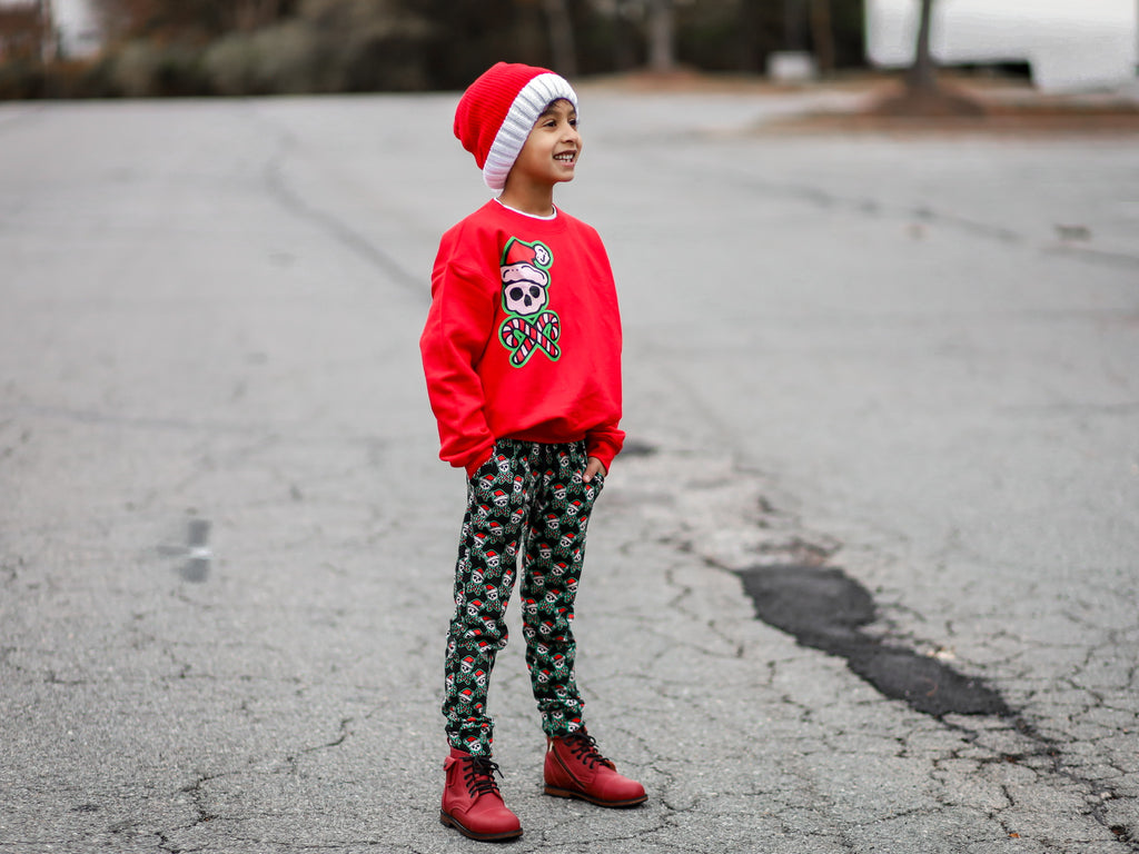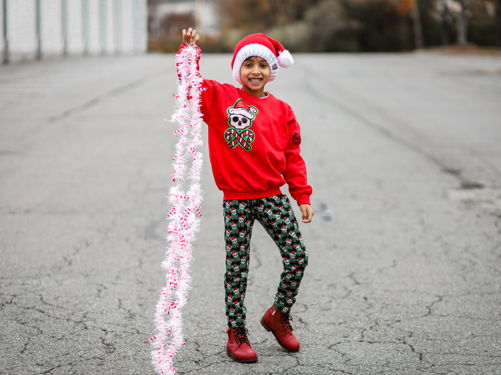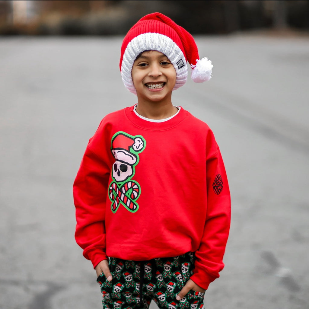 Candy Cane Skull Crew Sweatshirt, Red (Toddler, Youth, Adult)