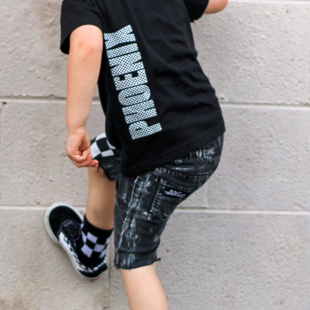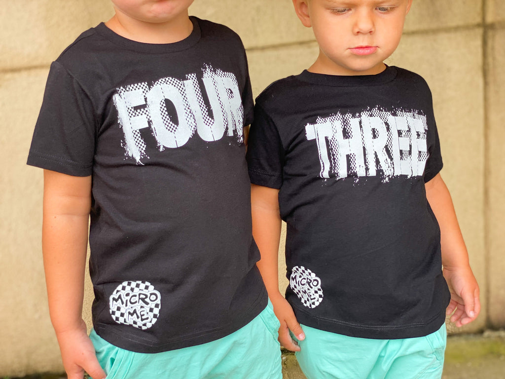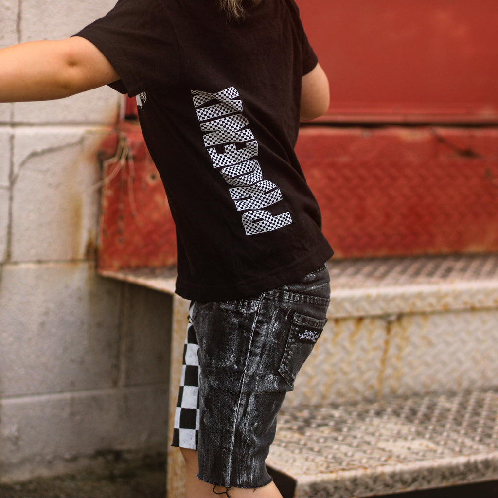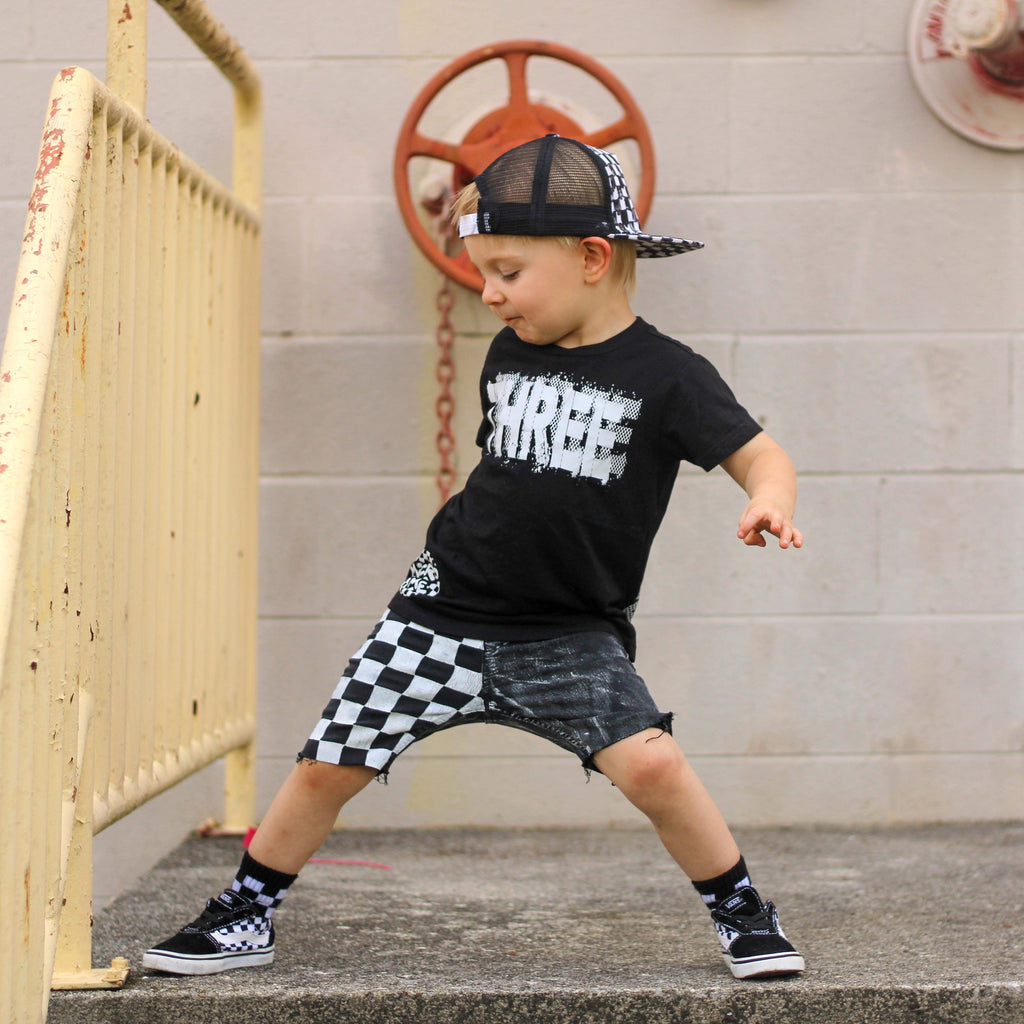 CB-***THREE Checker Bday Tee, Black (Infant,Toddler,Youth)