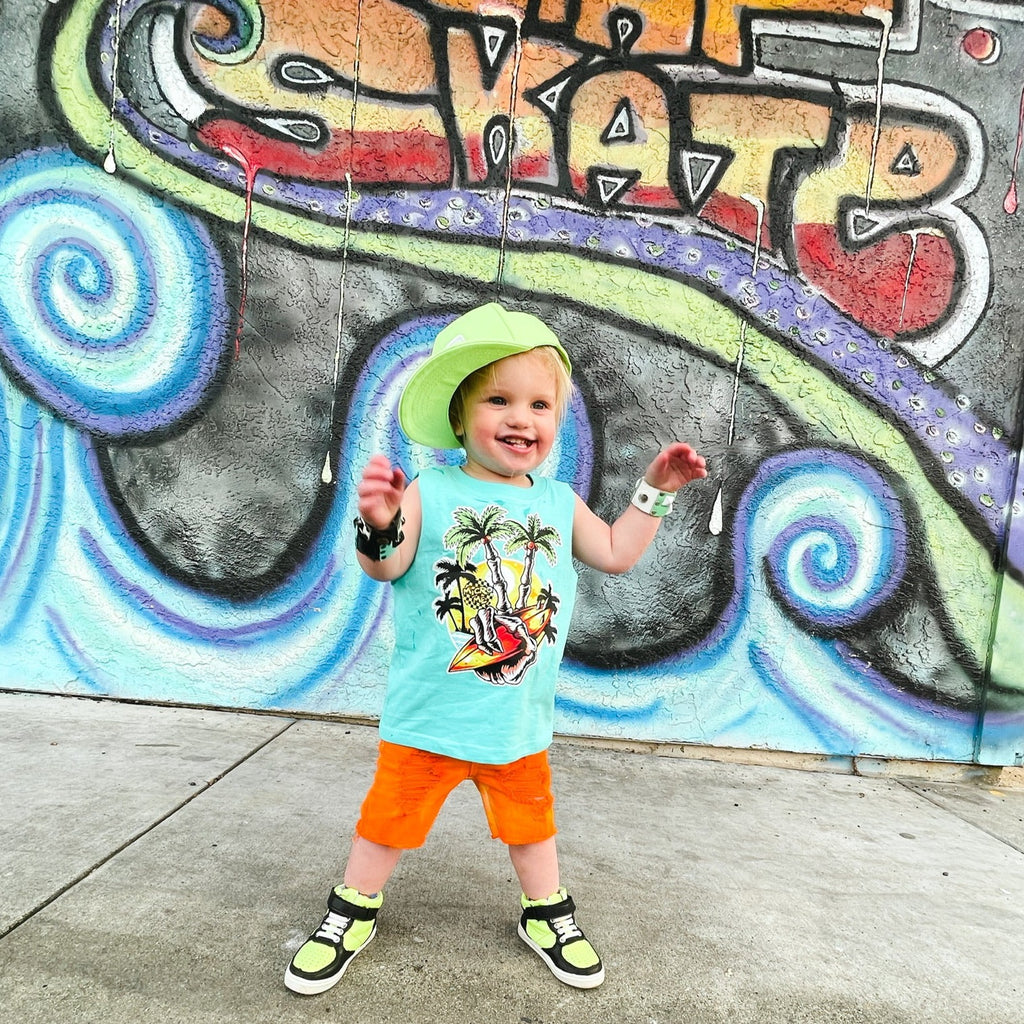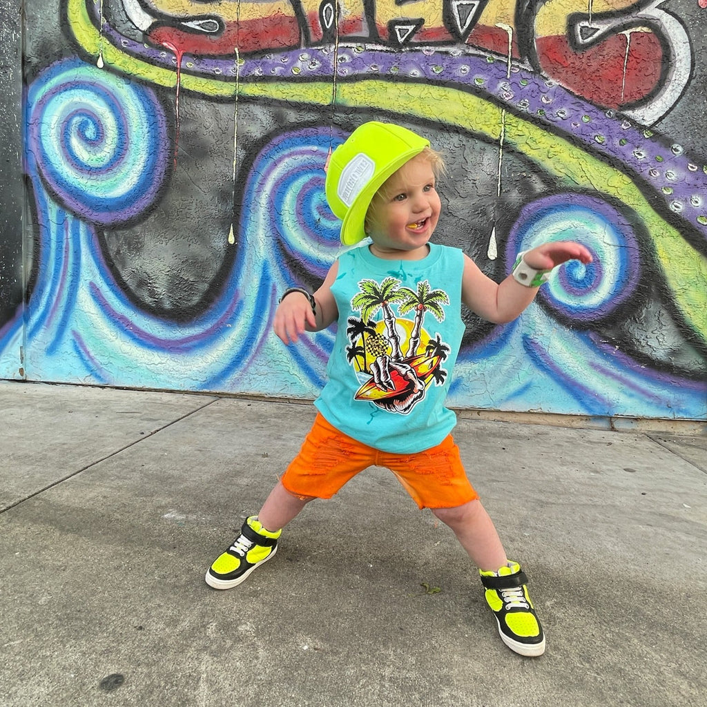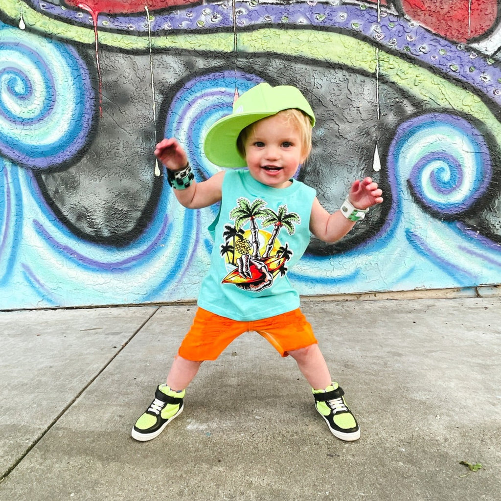 ALL the surf styles for summer! Baby, Toddler, Kids and Adult tanks.  Our muscle tanks are our tees cut off, raw edges.