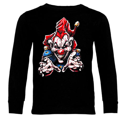 CREEPY CLOWN Long Sleeve Shirt, Black (Infant, toddler, youth, adult)