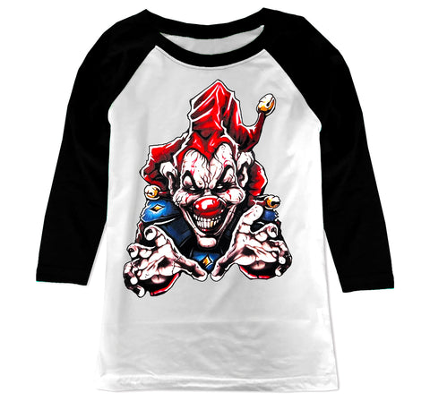 CREEPY CLOWN RAGLAN Shirt, W/B (Toddler, youth, adult)