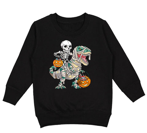 Mummy Dino Crew Sweatshirt, Black (Toddler, Youth, Adult)
