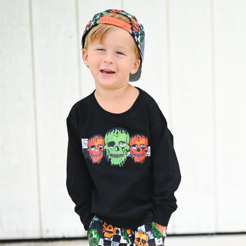 Spooky Skulls Crew Sweatshirt, Black (Toddler, Youth, Adult)