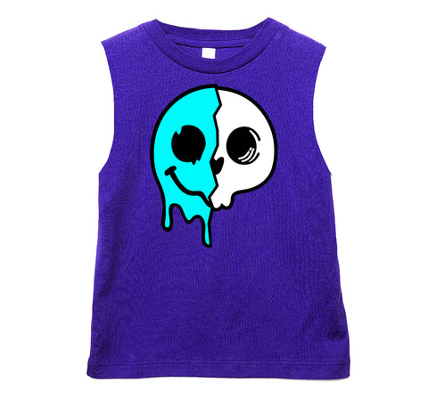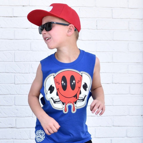 Micro Me is inspired by SURF-SKATE-and PUNK.....since 2004! These new skelly happy face graphics will become a fave in your littles closet! Fun and bright- perfect for summer!! Offered in tees, muscle tanks, muscle hooded fleece, and rompers!