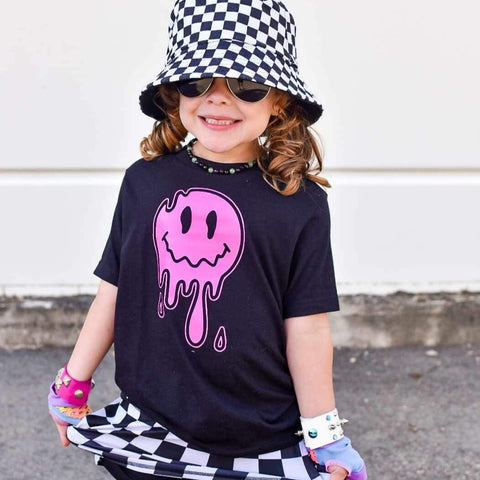 This collection features a range of stylish  options, including joggers, shorts, biker shorts, hooded tank rompers, and skirts. All crafted from custom-designed fabrics printed in California and then sent to our talented seamstress in Texas for the finishing touches. The prints are exclusive, and the graphic have a RAD 90's flair.