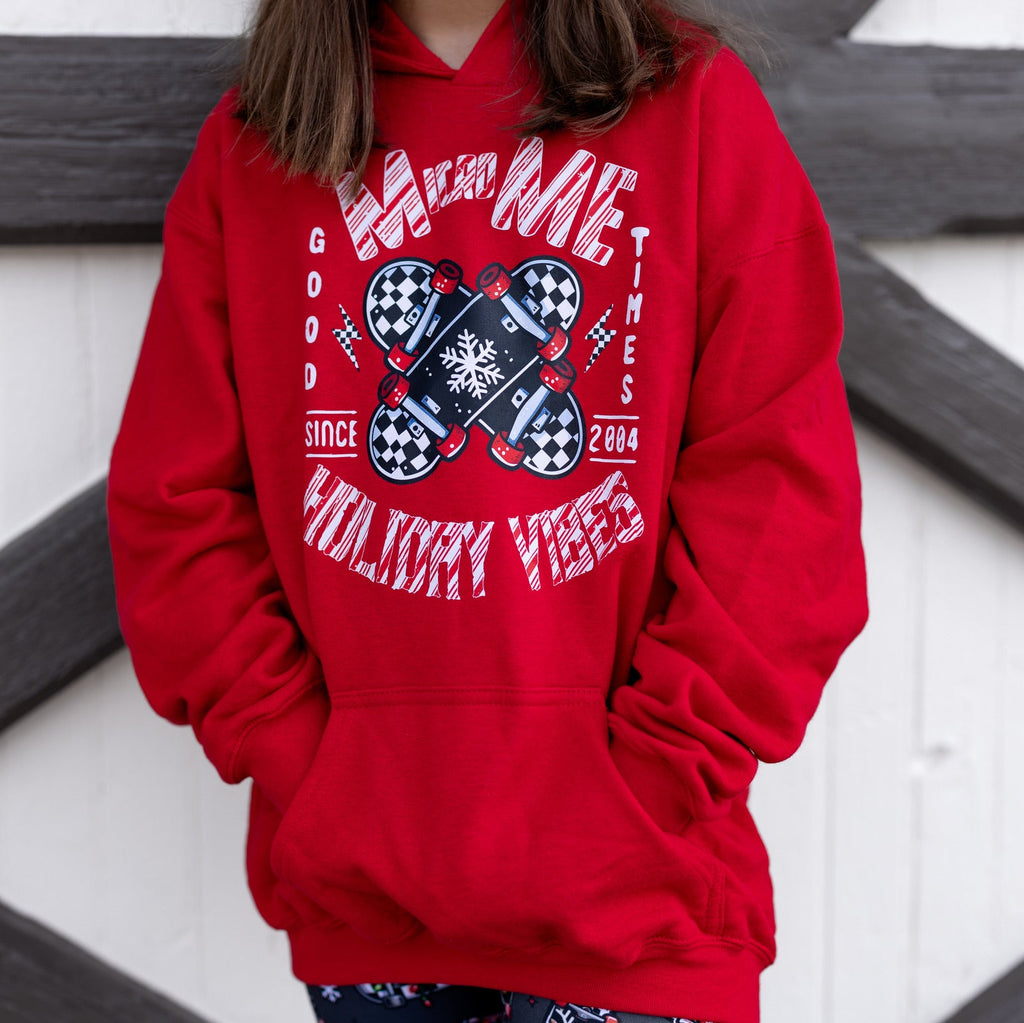 Holiday Vibes Hoodie, Red (Toddler, Youth, Adult)