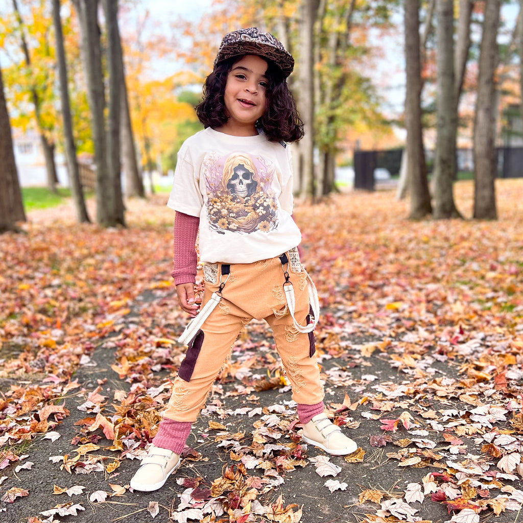 Autumn Skull Long Sleeve Shirt, Natural (Infant, toddler, youth, adult)