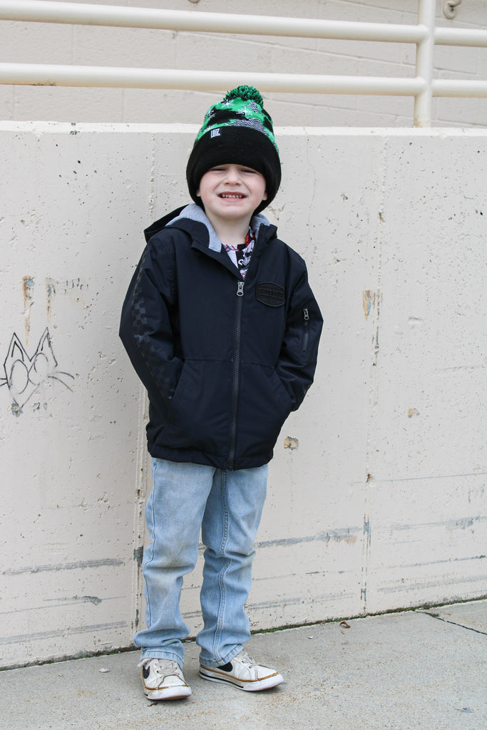 - 1.8-ounce polyfill insulation in hood and sleeves