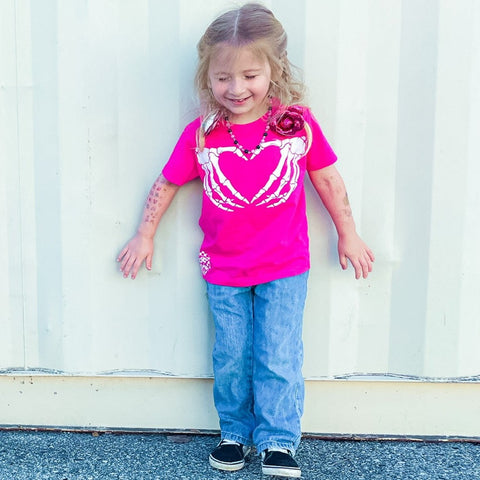 Skelly Heart Hands Tee Shirt, HOT PINK (Infant, Toddler, Youth, Adult)