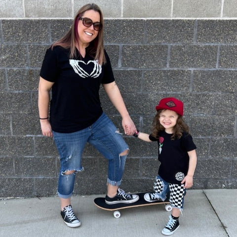 Skelly Heart Hands Tee Shirt, BLACK (Infant, Toddler, Youth, Adult)