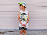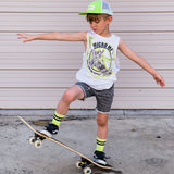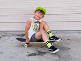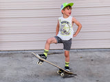Skate inspired tees for babies, toddlers, kids, youth, and even matching styles for mom & dad!  Our tanks are  our fashionable and soft tees with sleeves cut off. Raw Edges.  ! Made from a soft cotton-poly blend these will quickly become a fave in the closet!