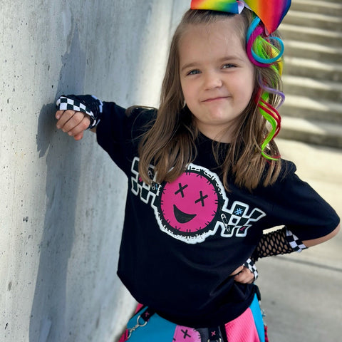 Get all the emotions right here!!!  Right in time for Inside Out 2 to come out!!   Happy, sad, confused and more!   Punk Rocker, Wild Child, and Punk Princess with the smiley print.  Want your own name or phrase?  Grab our CUSTOM option!