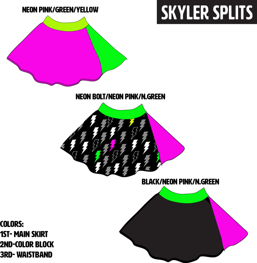MTO- Skyler Neon Bolts Split Skirt (Infant, Kids, Adult)