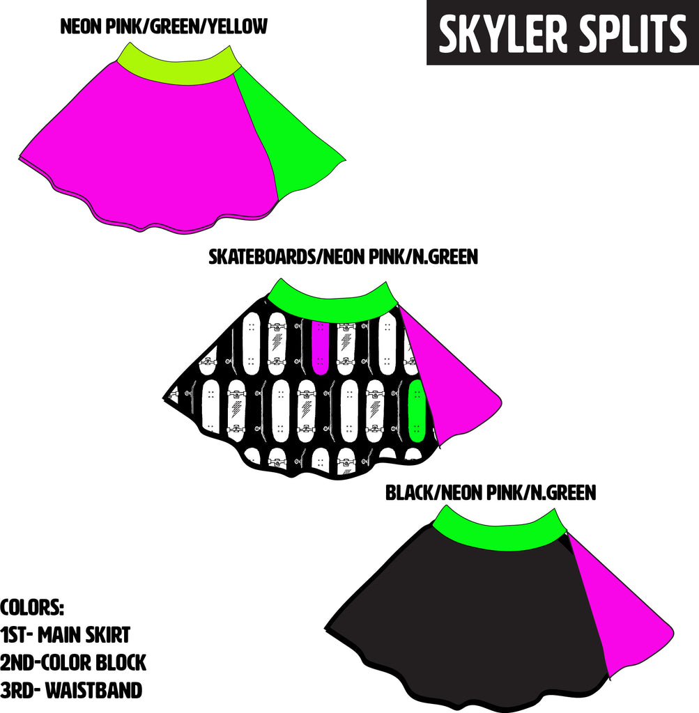 MTO- Skyler Neon Skateboard Split Skirt (Infant, Kids, Adult)