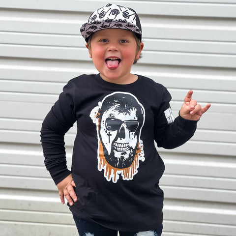 T Skull Long Sleeve Shirt, Black (Infant, toddler, youth, adult)