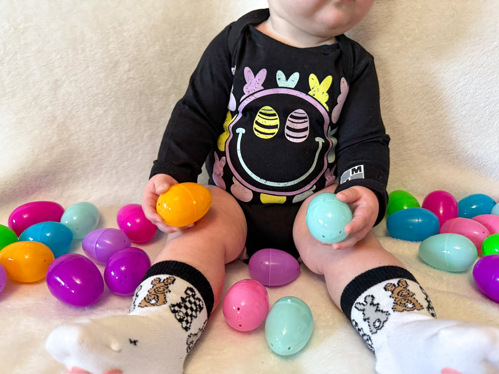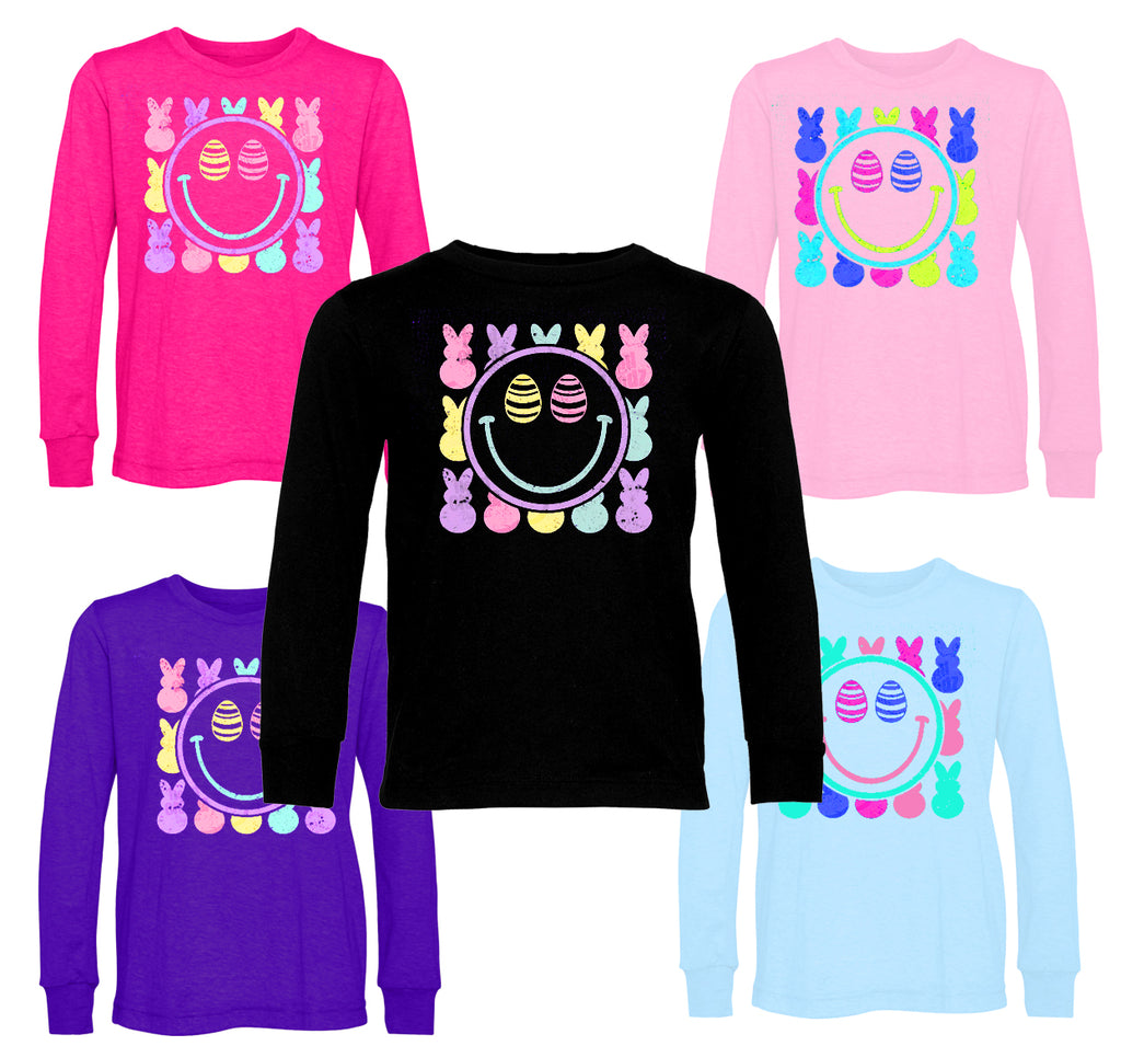 Smiley faces, eggs, bunnies make up this perfect Easter tees for kids and matching for their parents!! Cute graphic for Easter for all your kids! Gender-Neutral, Easter trendy tees.
