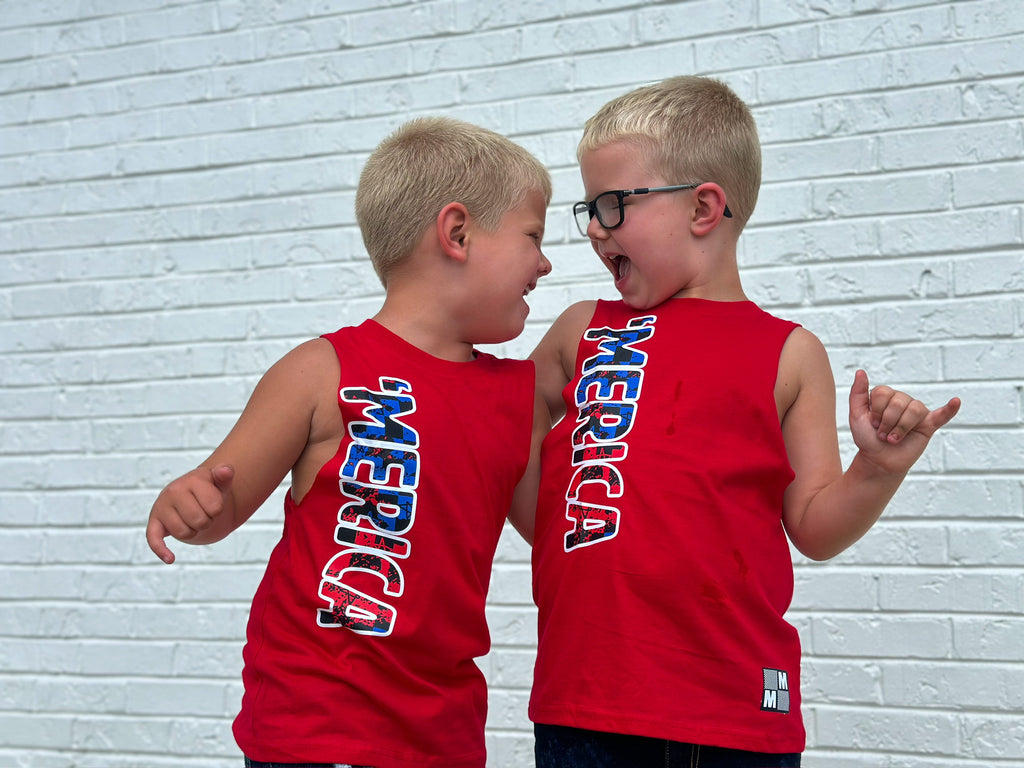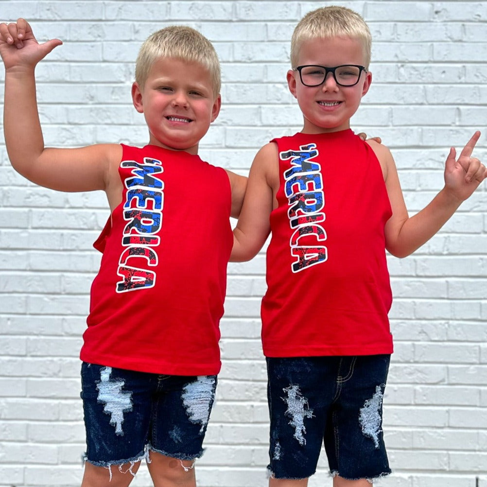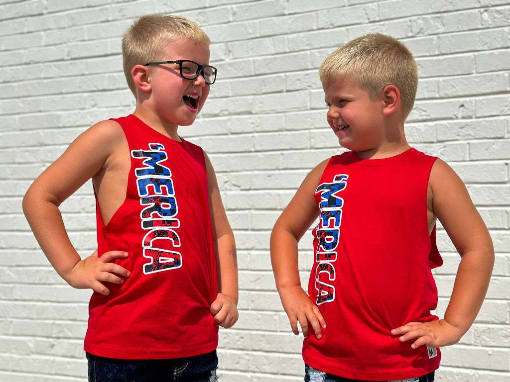 Our tanks are tees cut, raw-edges.  For muscle style cut, please leave a note!  Regular tanks (not cut) are available in YOUTH sizes only!  Red, White, or Black. Leave a note!