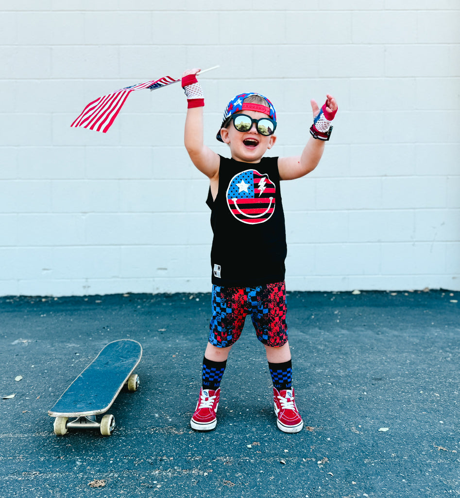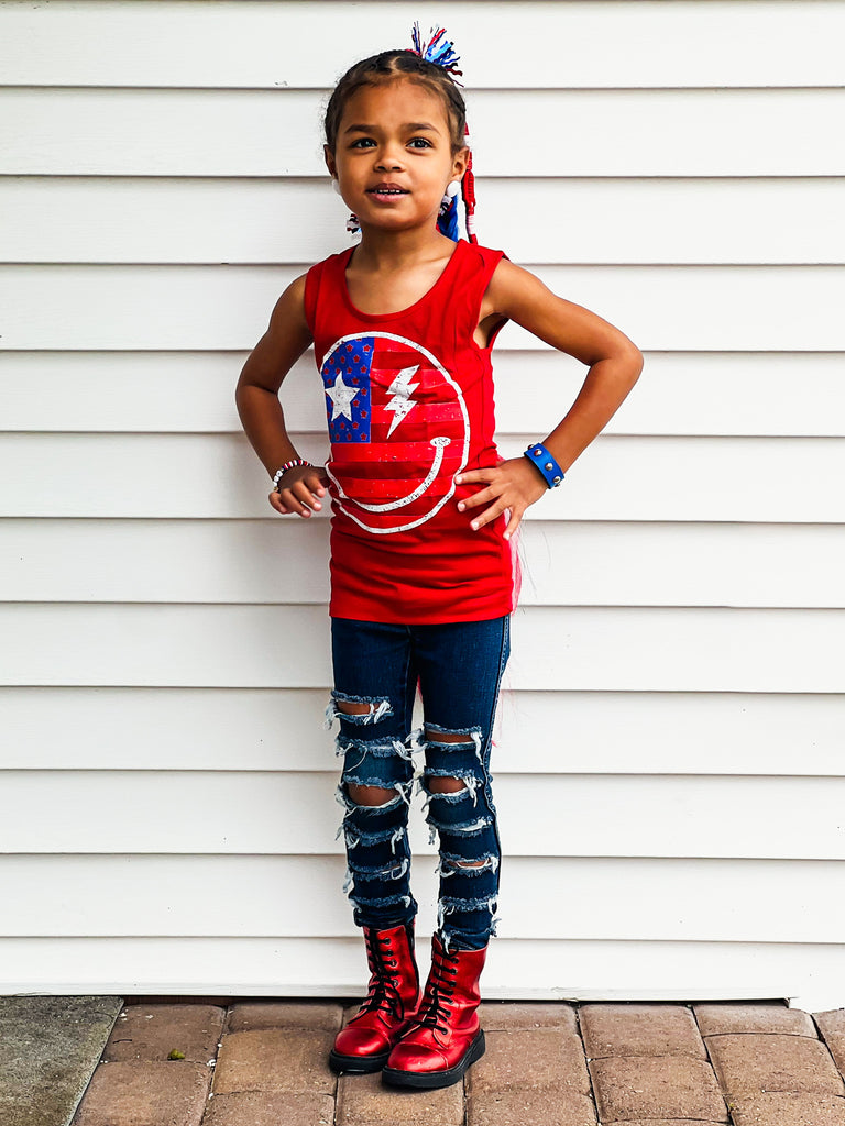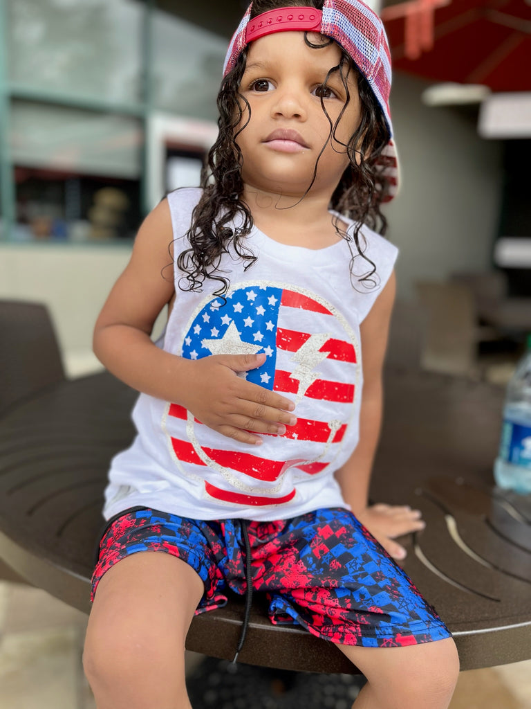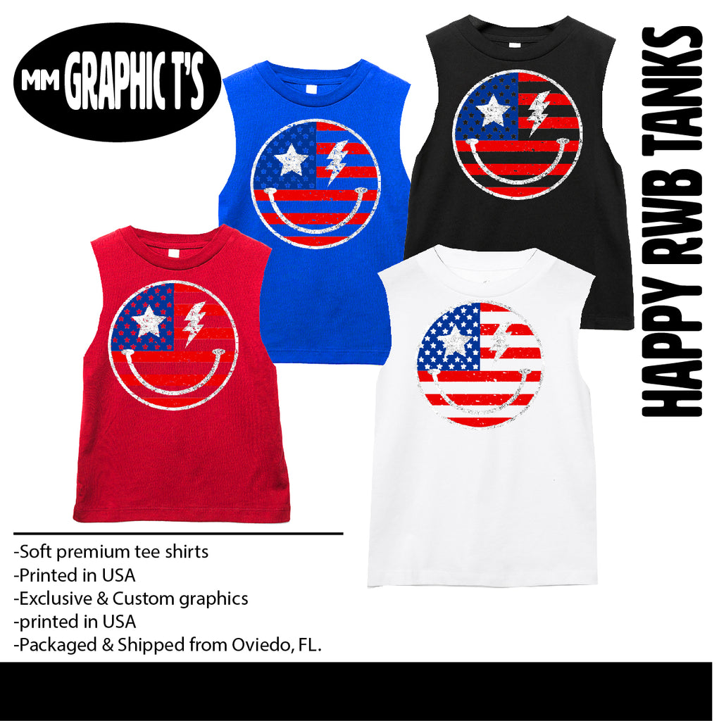 Our tanks are tees cut, raw-edges.  For muscle style cut, please leave a note!  Regular tanks (not cut) are available in YOUTH sizes only!  Red, White, or Black. Leave a note!