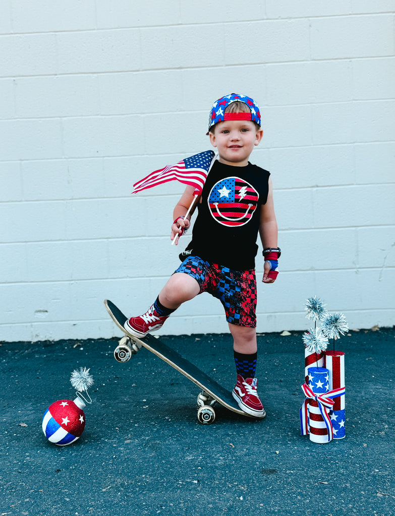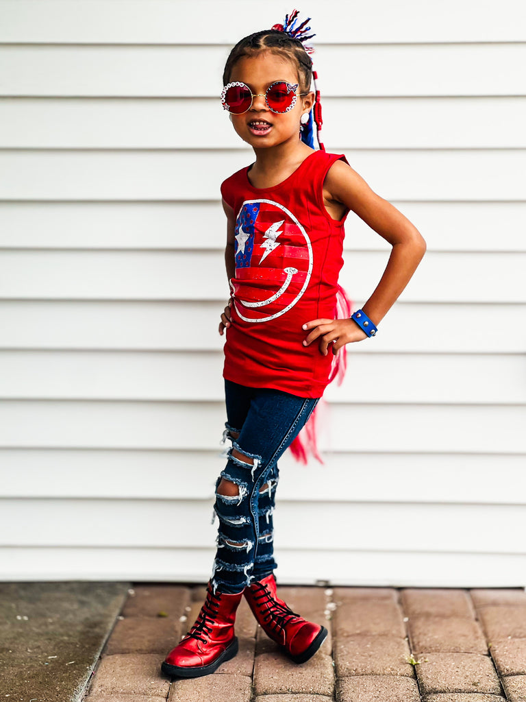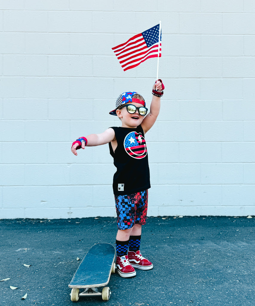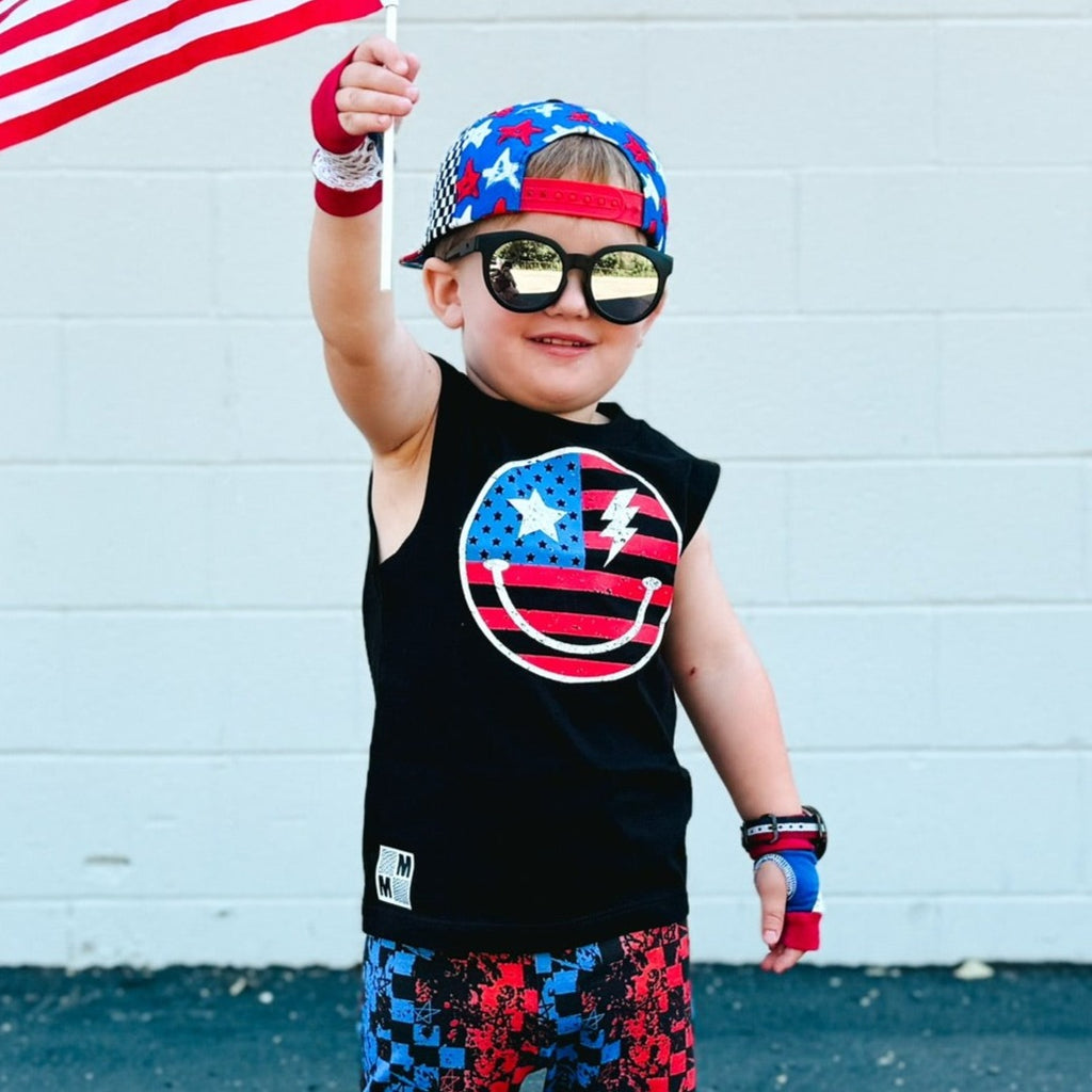 Our tanks are tees cut, raw-edges.  For muscle style cut, please leave a note!  Regular tanks (not cut) are available in YOUTH sizes only!  Red, White, or Black. Leave a note!