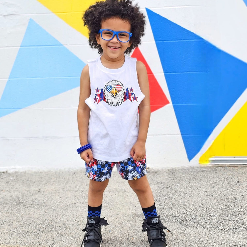 The perfect tanks for your littles this summer! Our soft, comfy tanks will quickly become your kiddos favorite thing in their closets! Fun graphics for all your occasions! Grab them now before they're gone! Our muscle tanks are HANDCUT purposely raw edge.
