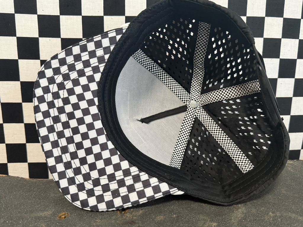 -Checker detailing and taping! Checkerboard under brim.