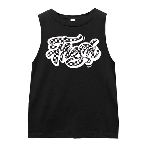 Muscle tanks are out tees with sleeves cut-off, raw-edges