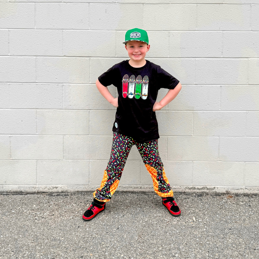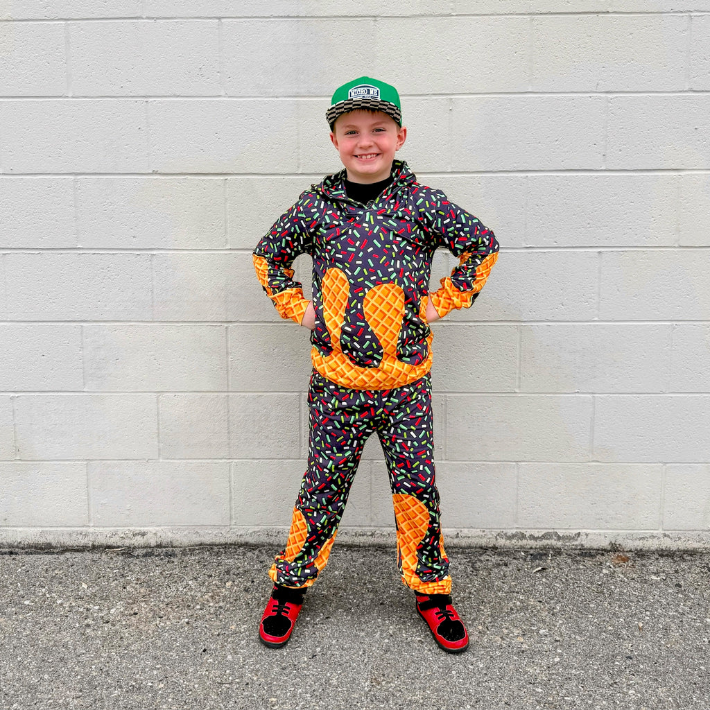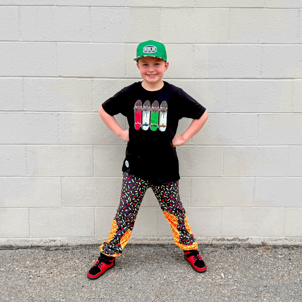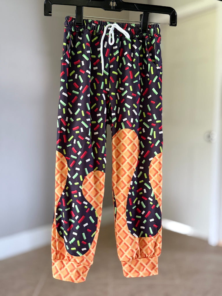 🖤Featuring our exclusive Ice Cream Drip print, each pair brings bold color, melty vibes, and that streetwear edge Micro Me is known for. Finished with an elastic waistband, cuffed ankles, and serious drip energy.