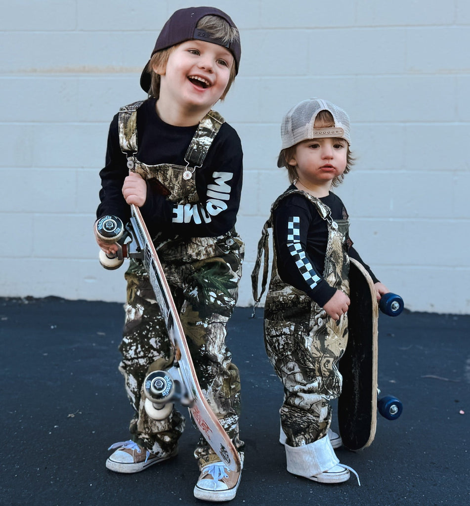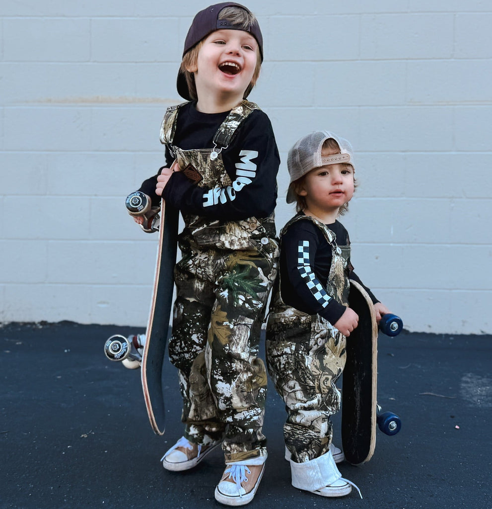 Right on trend...but keeping MM style these overalls are the perfect Fall style! Paired with our Logo long sleeve shirts and Fall Lidz for a perfect fit!