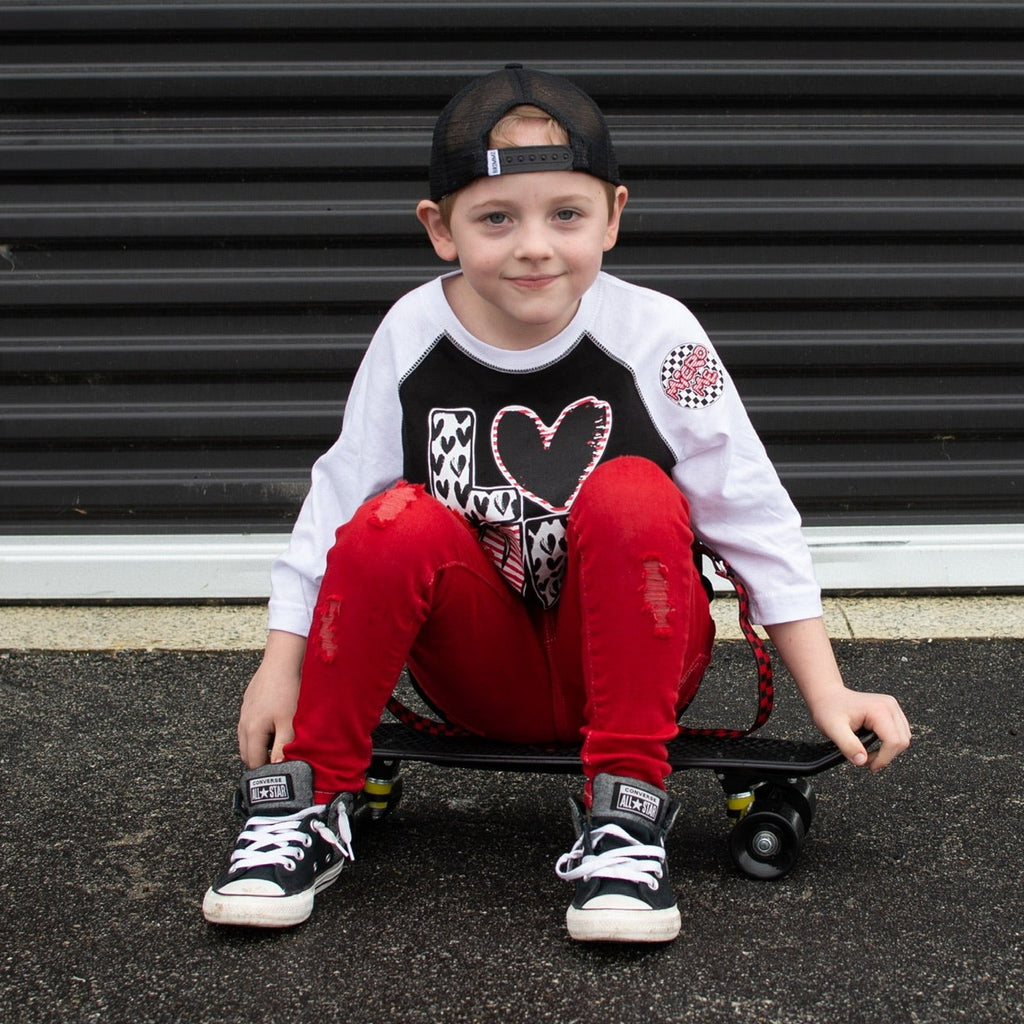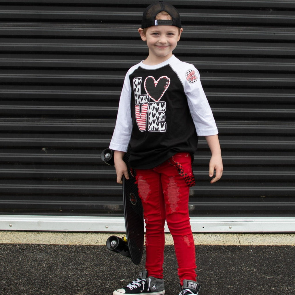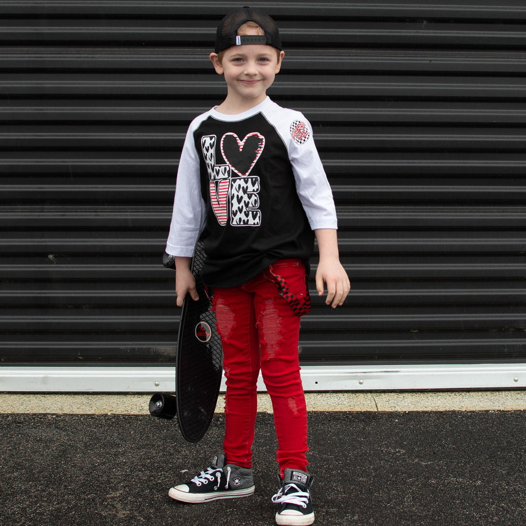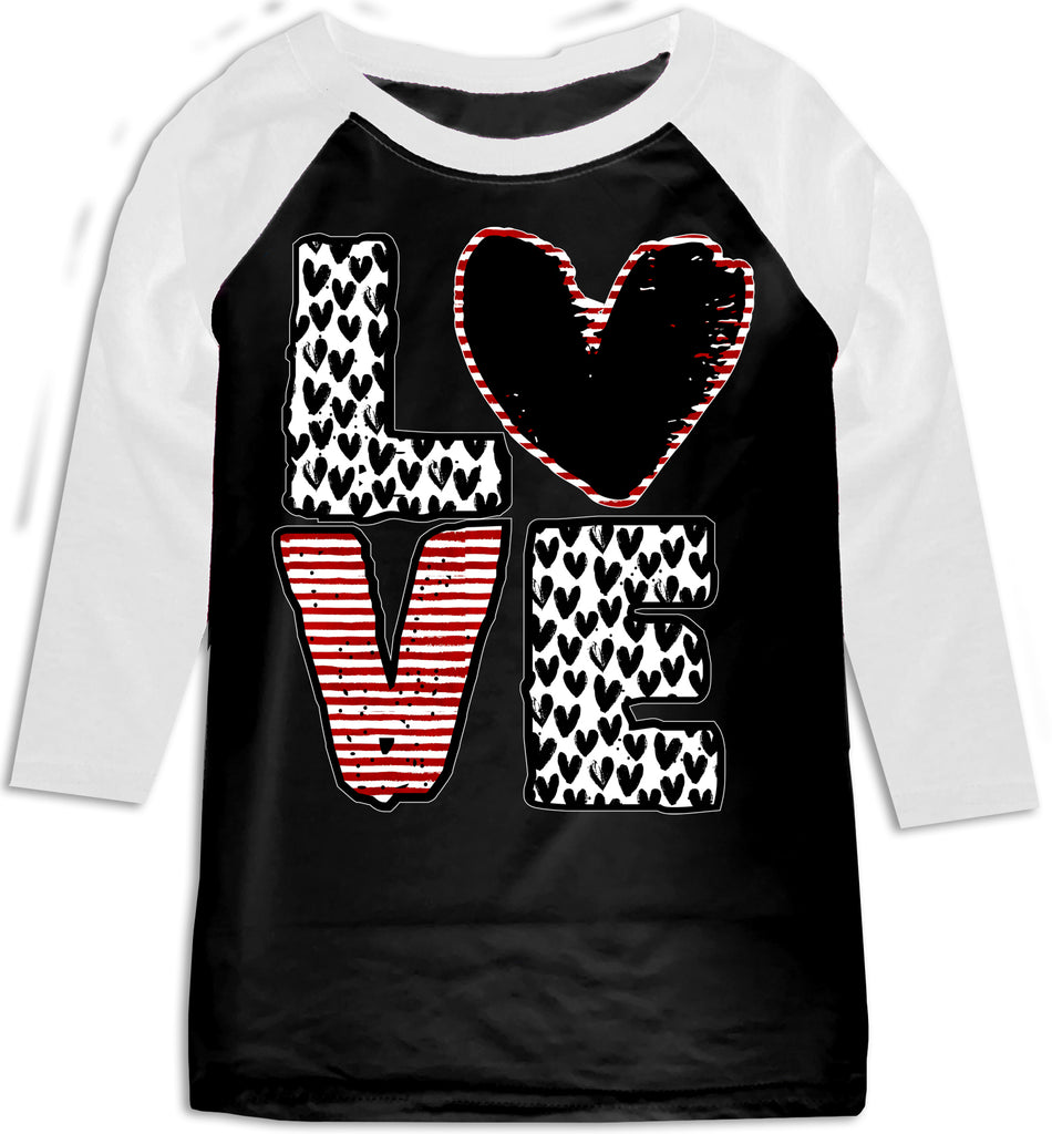 *LOVE Hearts Raglan, B/W (Toddler, Youth, Adult)