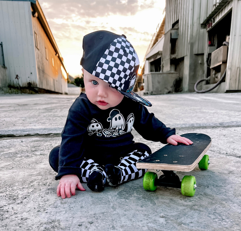 SK8R Ghost Long Sleeve Shirt, Black (Infant, Toddler, Youth, Adult)