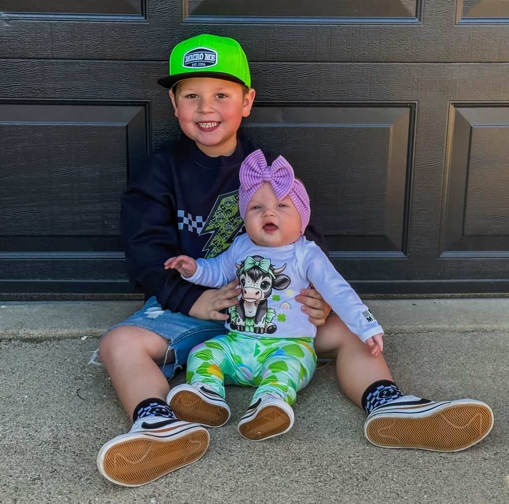 These leggings are designed with comfort and style in mind,.  The double brushed poly fabric ensures a soft and cozy feel, perfect for lounging or active play. The unique prints make each pair of leggings a special piece in your wardrobe. Whether you're shopping for your little one or for yourself, these joggers offer a stylish and comfortable option for everyday wear.