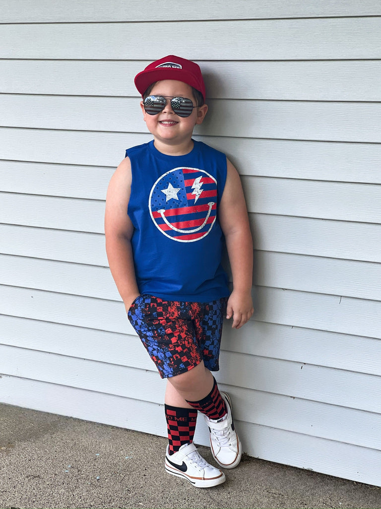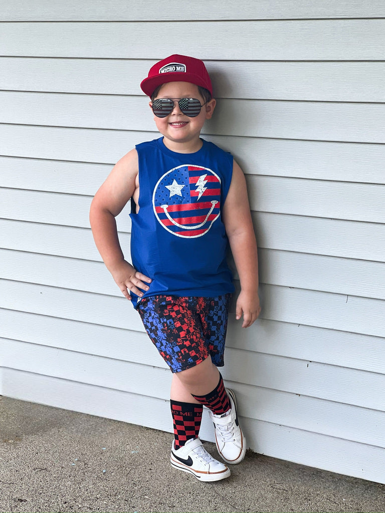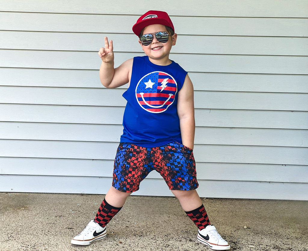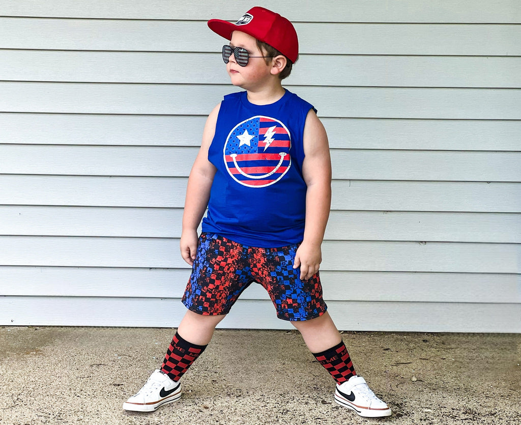 Our tanks are tees cut, raw-edges.  For muscle style cut, please leave a note!  Regular tanks (not cut) are available in YOUTH sizes only!  Red, White, or Black. Leave a note!