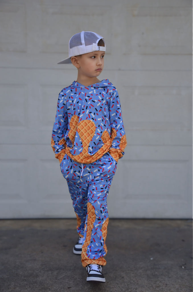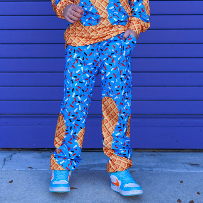 🖤Featuring our exclusive Ice Cream Drip print, each pair brings bold color, melty vibes, and that streetwear edge Micro Me is known for. Finished with an elastic waistband, cuffed ankles, and serious drip energy.