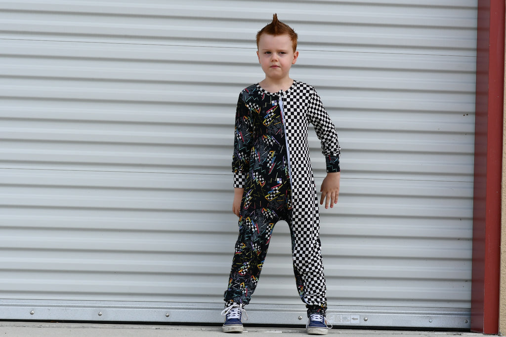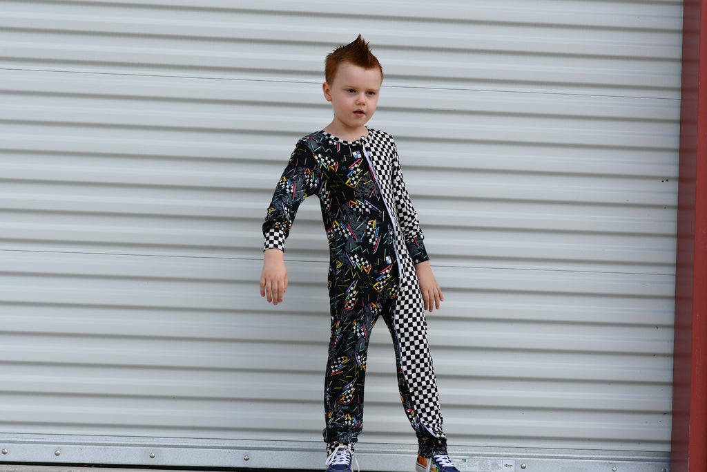 ARROW Zippy are long jammies with double zippers (zips from top and bottom for easy changes!) . Sizes up to 24M have the extra long/folded cuff to fold over their hands and feet.   This style mixes two fun prints for the cutest look for your littles!!