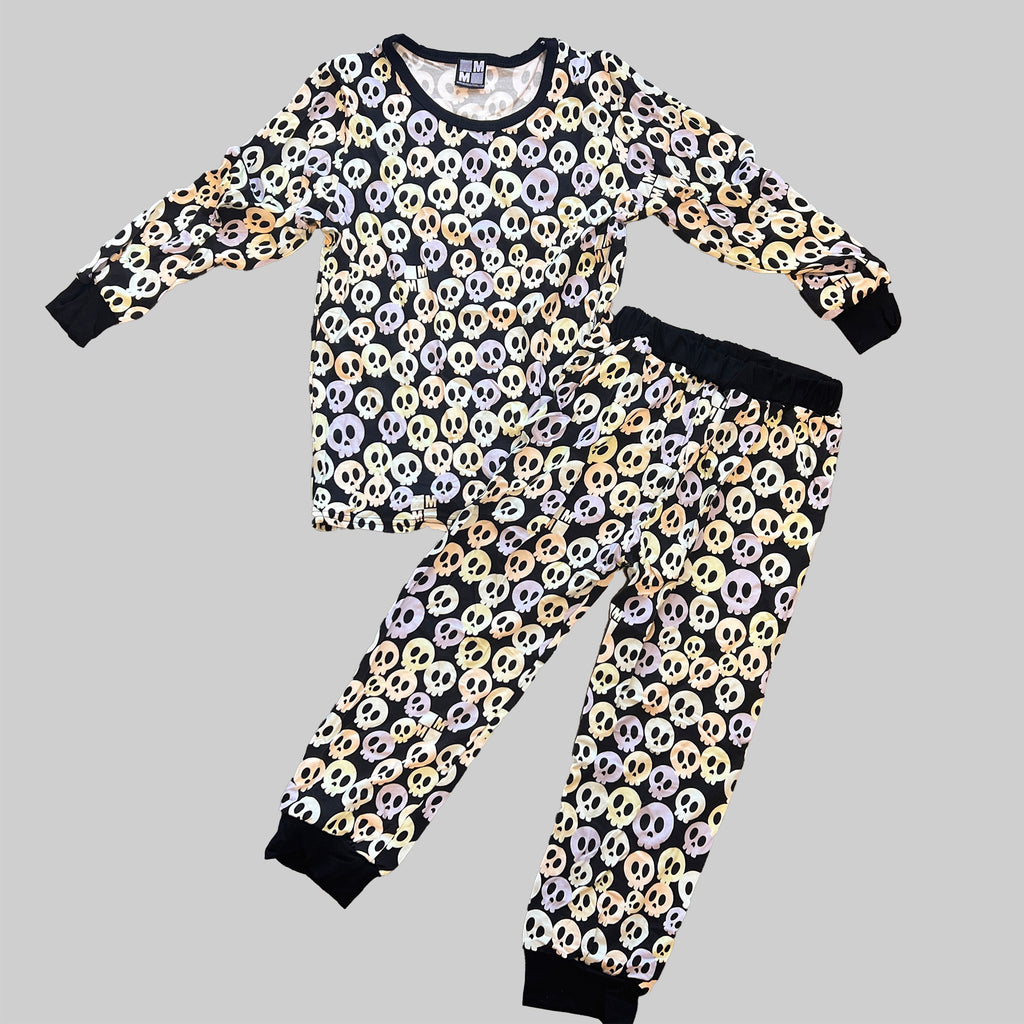 KASH Lounge Sets is a long sleeve and pant with contrasting trims. This bamboo set mixes a fun prints for the cutest look for your littles!