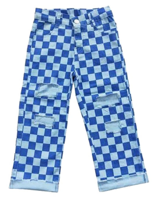 Checker Denim Pants, Blue