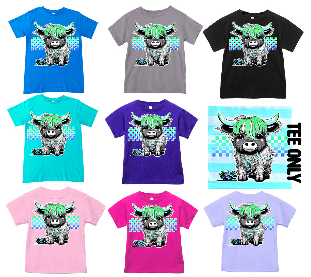 Easter Highland Cow (green version) Tees (Infant to Adult)