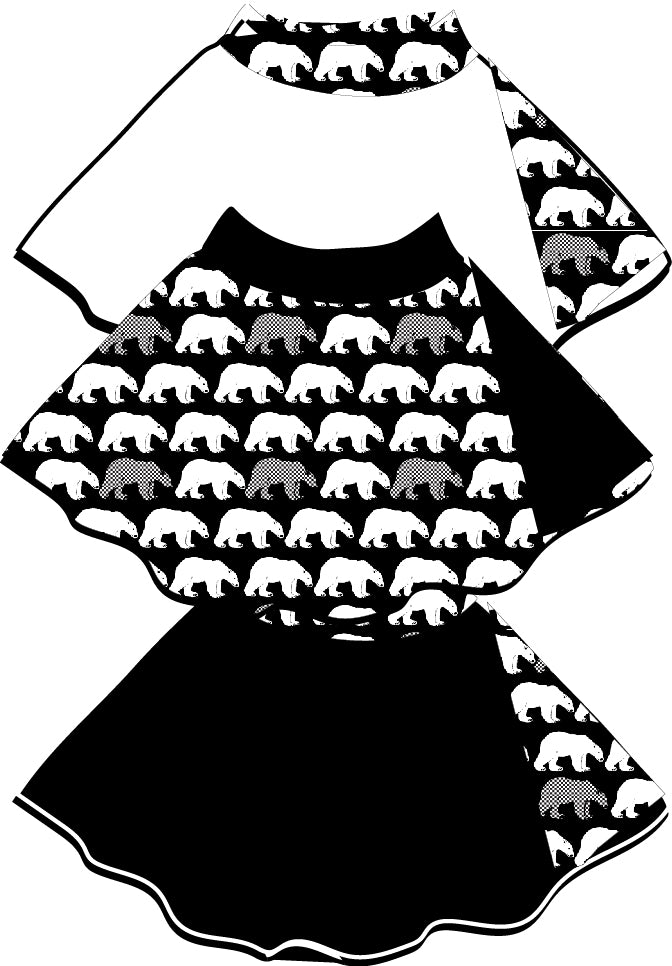 Made to order styles take 2-3 weeks.  Any items on the order will ship when the MTO item is ready.  For all items you want sooner, please order separately.   These are our signatrue skater skirt style with MM color block.   Made in USA, hand-sewn, with custom printed double-brushed poly fabrics.