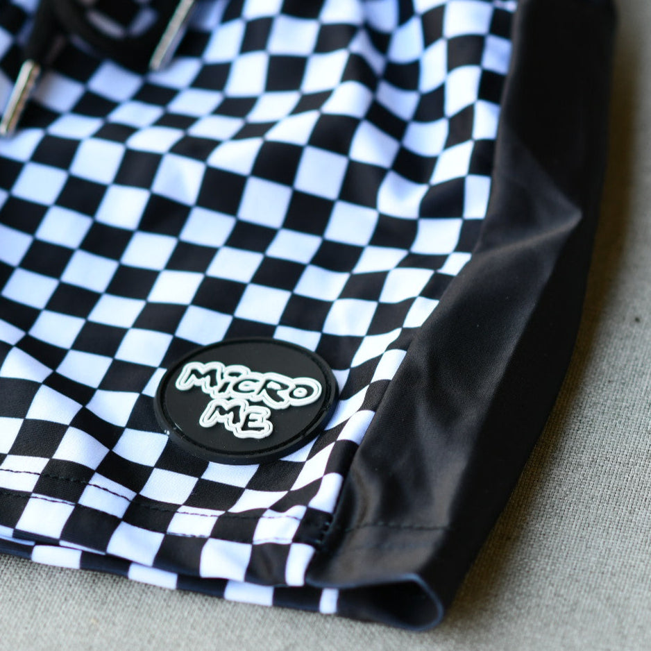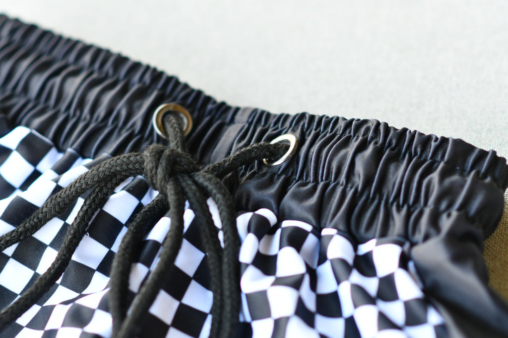 SWIM fabric, True functional drawstring, NO liner, Rubber logo patch.