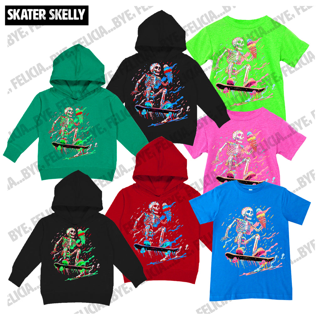 Skater Skelly, (Hoodies, Tees & Long Sleeves)