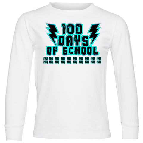 100 Days of School BOLT LS Shirt, White (Toddler, Youth, Adult)