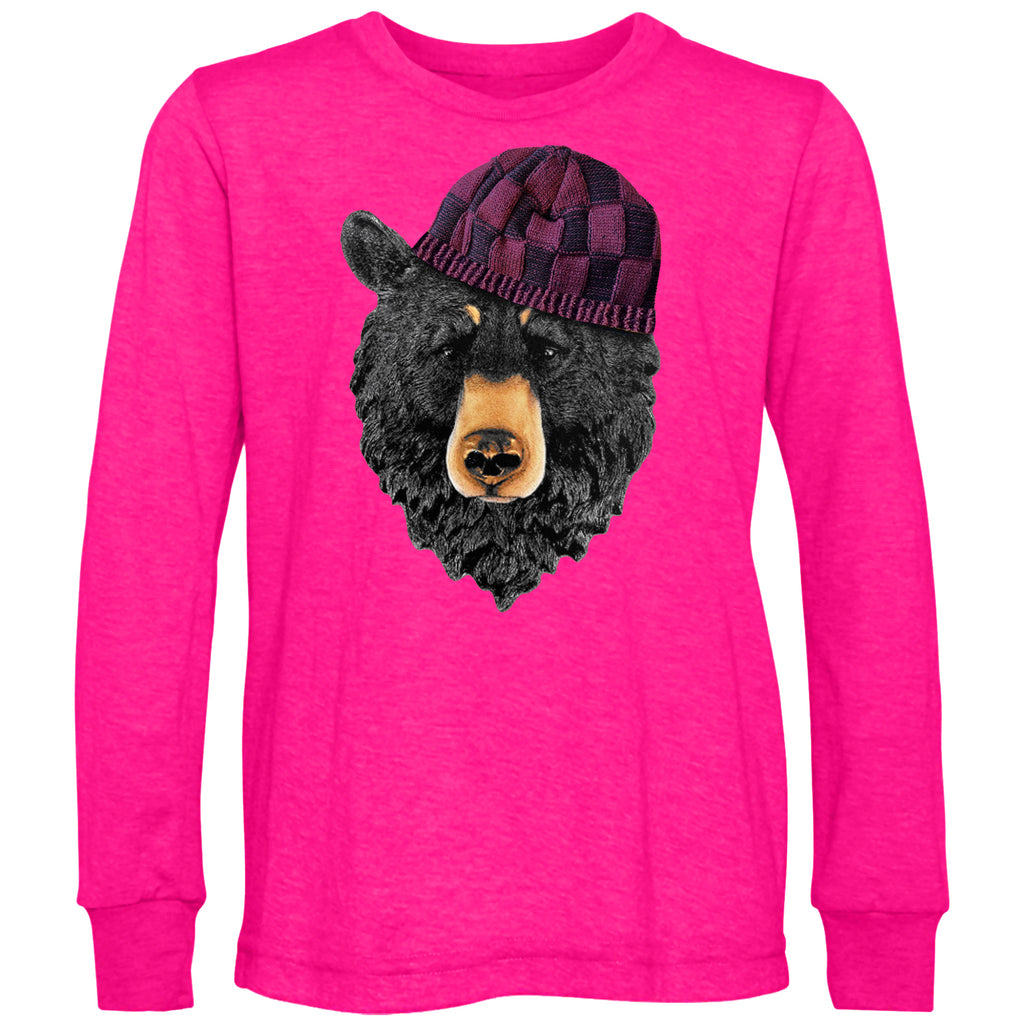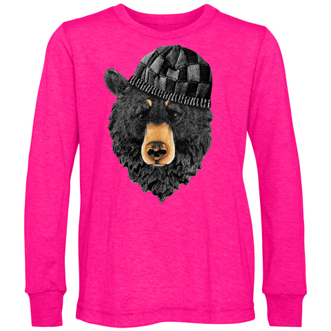 Bear Knit Checkers Long Sleeve Shirt, Hot Pink (Infant, Toddler, Youth, Adult)