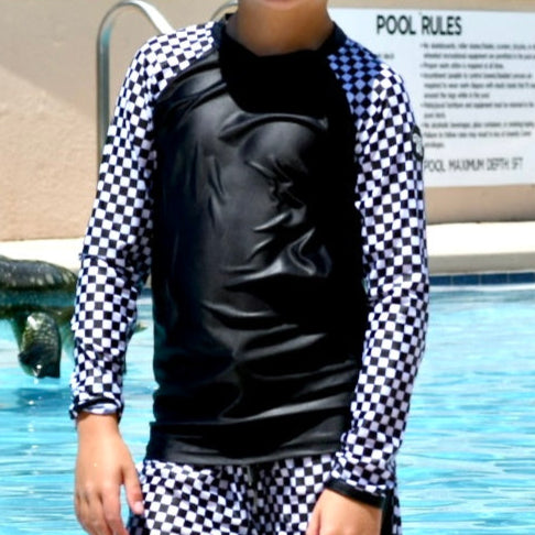 Black/Checkerboard Swim Shirt, (Baby-Youth)