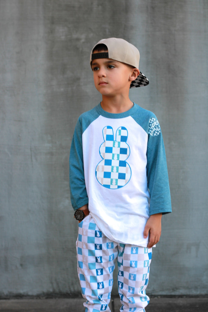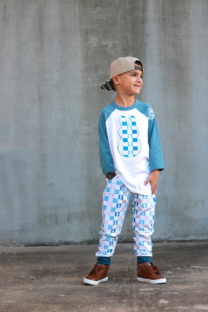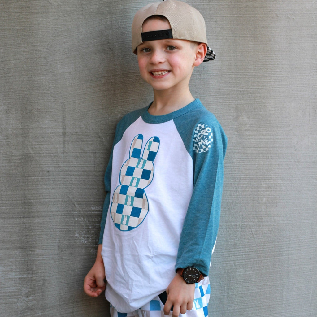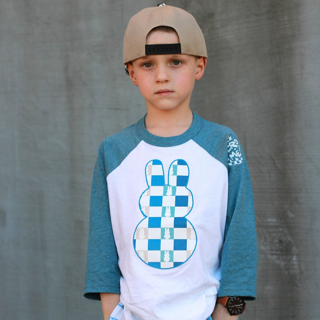 Bunny Checks Tee, Saltwater (Infant, Toddler, Youth, Adult)