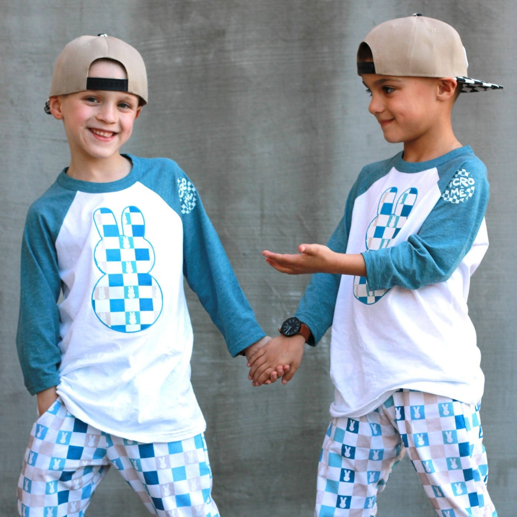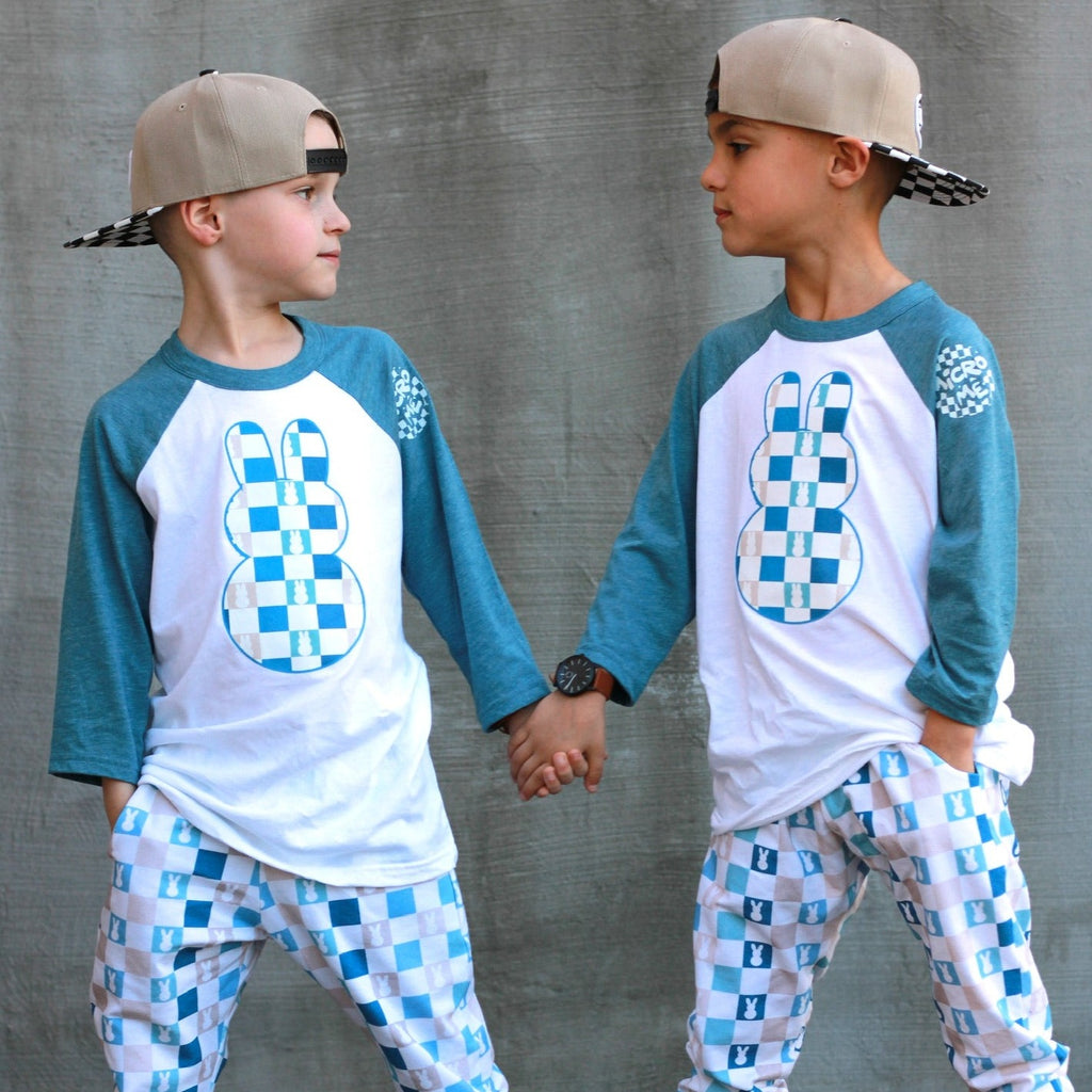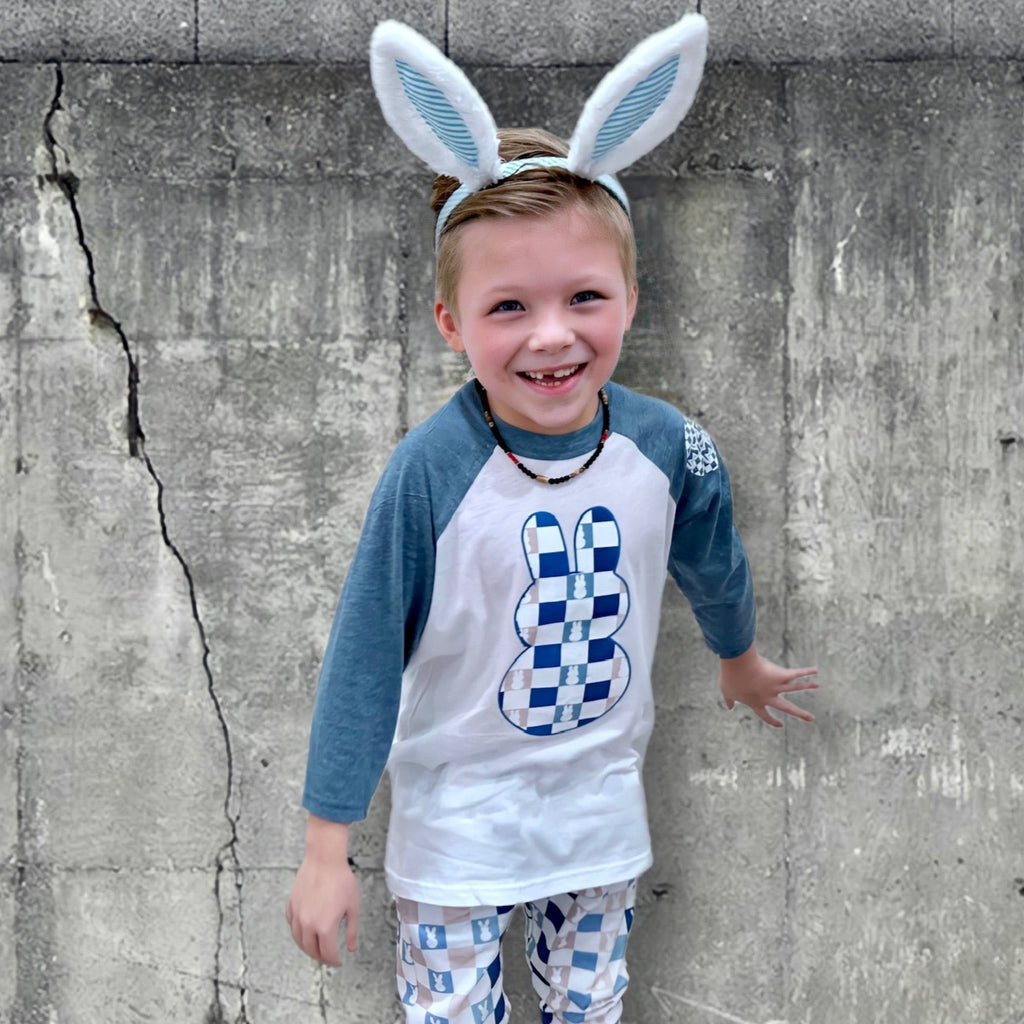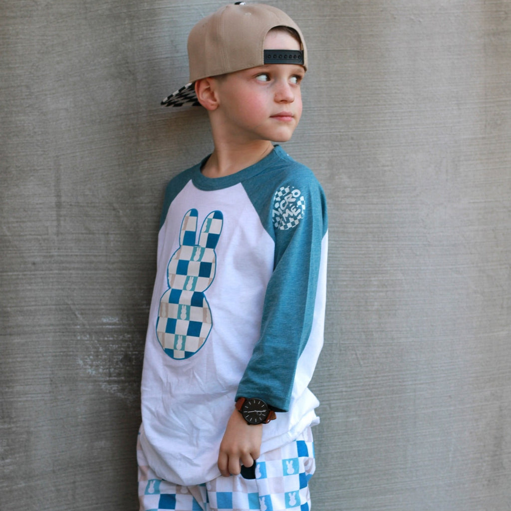 Bunny Checks Tee, Saltwater (Infant, Toddler, Youth, Adult)