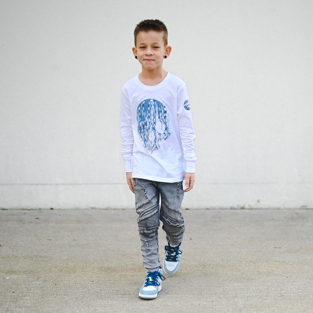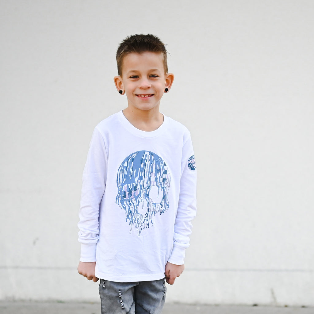 Bunny Drip Skull LS Shirt, White (Infant, Toddler, Youth , Adult)