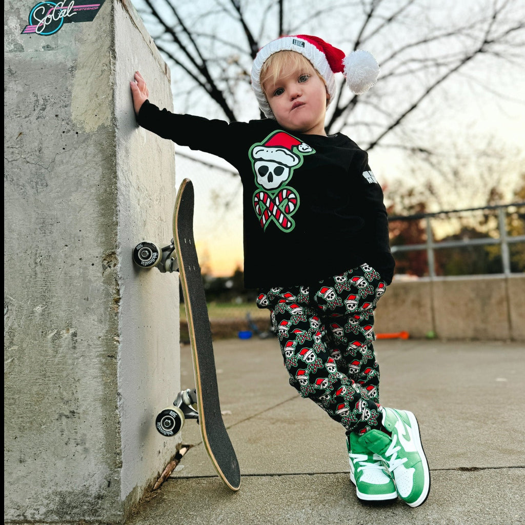 Candy Cane Tee or LS, Black (Infant, Toddler, Youth,Adult)