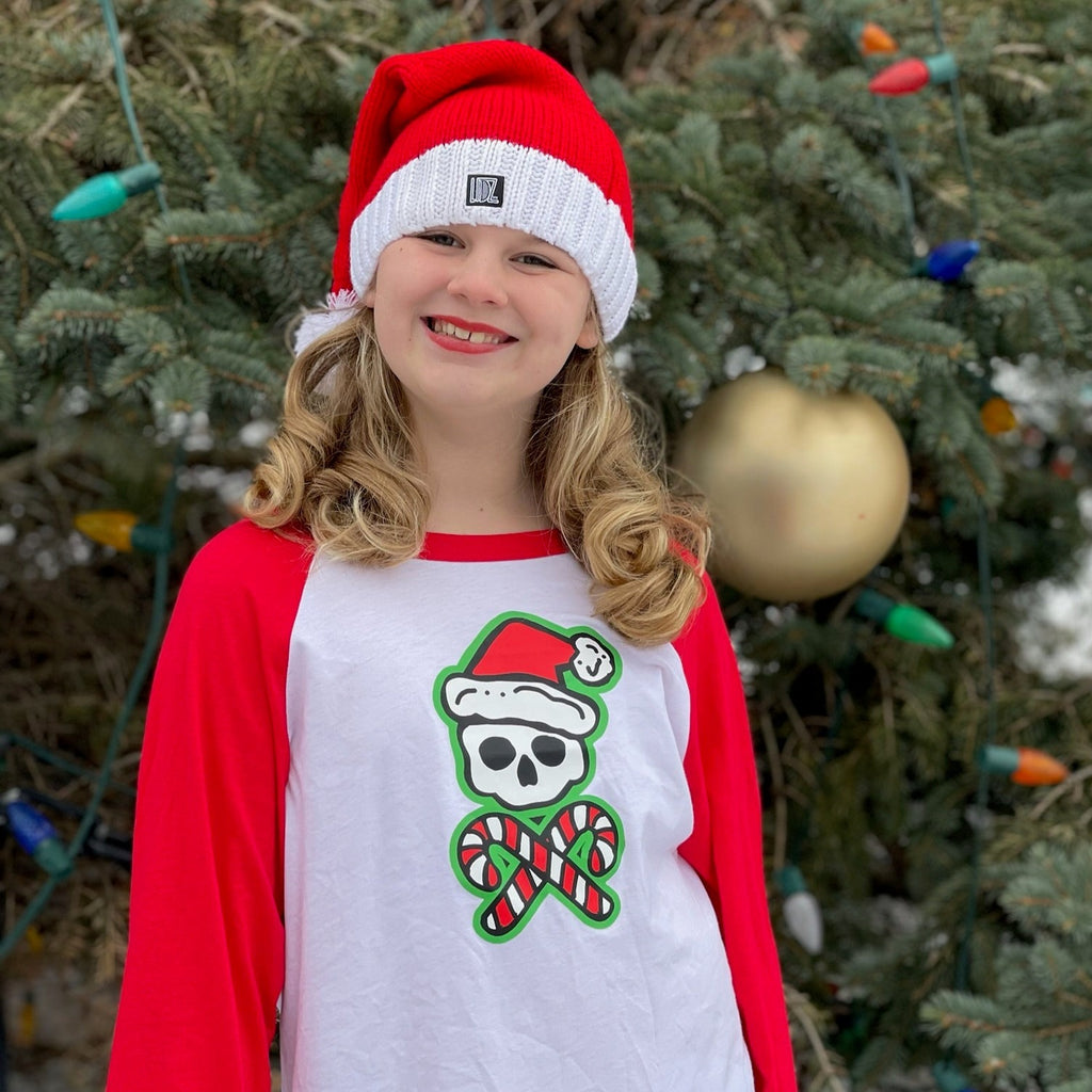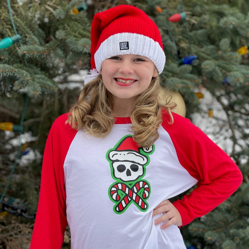 Candy Cane Skull LS Shirt, Black (Infant, Toddler, Youth, Adult)